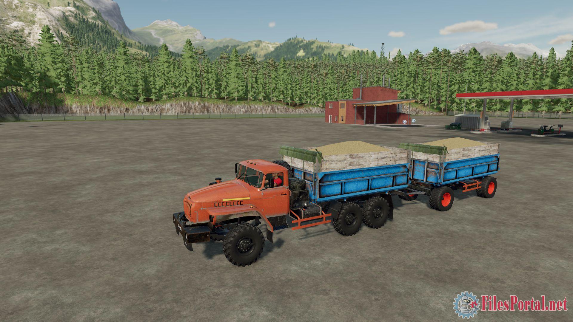 Мод добавляет грузовик Урал 4320 и сельскохозяйственную машину с прицепом.